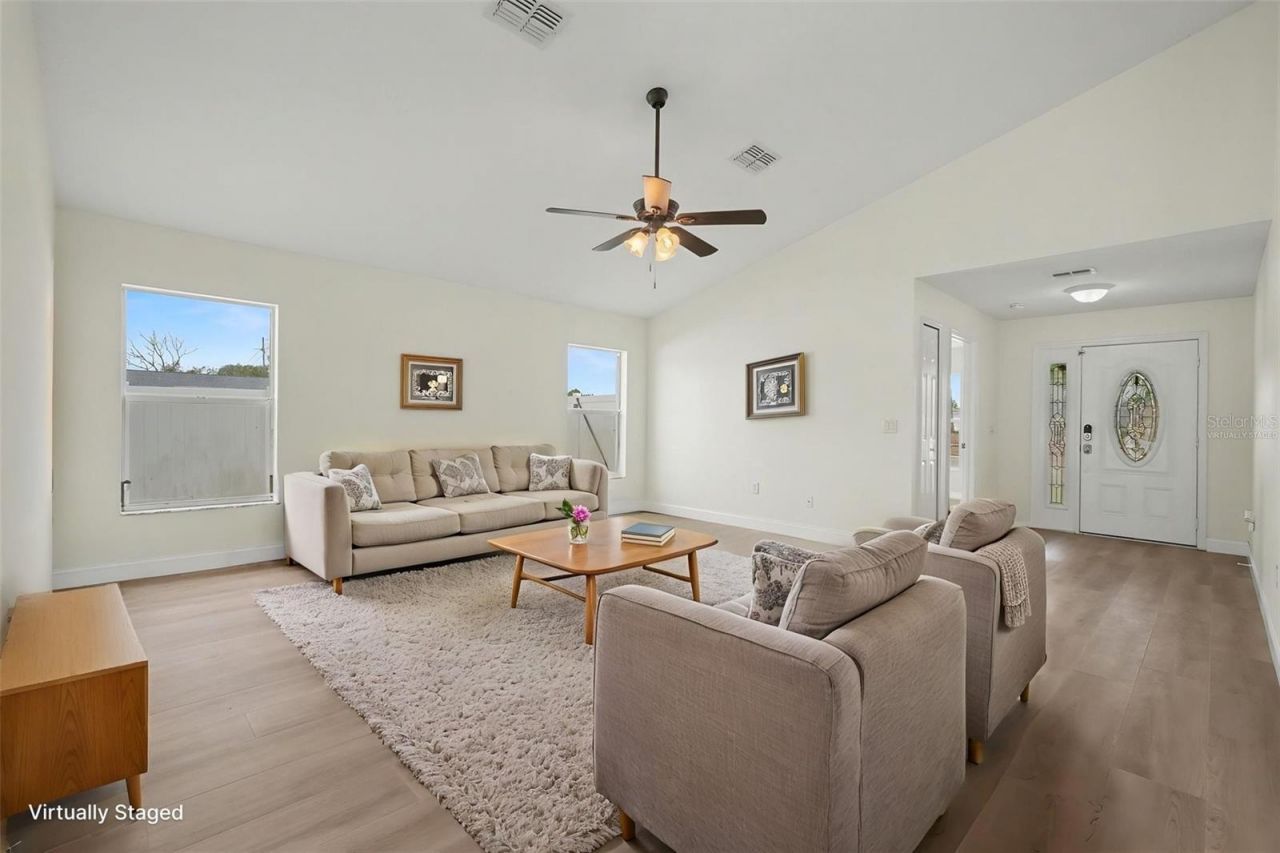 One or more photo(s) has been virtually staged. This 3 bedroom home has been recently renovated and is move-in ready! Brand new luxury vinyl flooring runs throughout, the interior has been freshly painted, and the kitchen has been refreshed with white quartz countertops, a large open sink, and new appliances including the stove, dishwasher, microwave, and garbage disposal. The living area flows right into the kitchen, which has tons of cabinet space, room for barstools, and still plenty of space for a dining table. The primary bedroom is tucked away at the back of the home for a little more privacy. The backyard is fully fenced with white vinyl fencing, and there's a wide gate so you can actually pull in a boat, trailer, or other toys without a headache. You've also got a covered patio for hanging out and a shed for extra storage. The big ticket items are already handled with a new AC in 2024 and water heater in 2023. No HOA means no fees and no restrictions, which is getting harder to find. And you're just minutes from both US-19 and SR-52, so getting to shopping, restaurants, and everything else is easy.