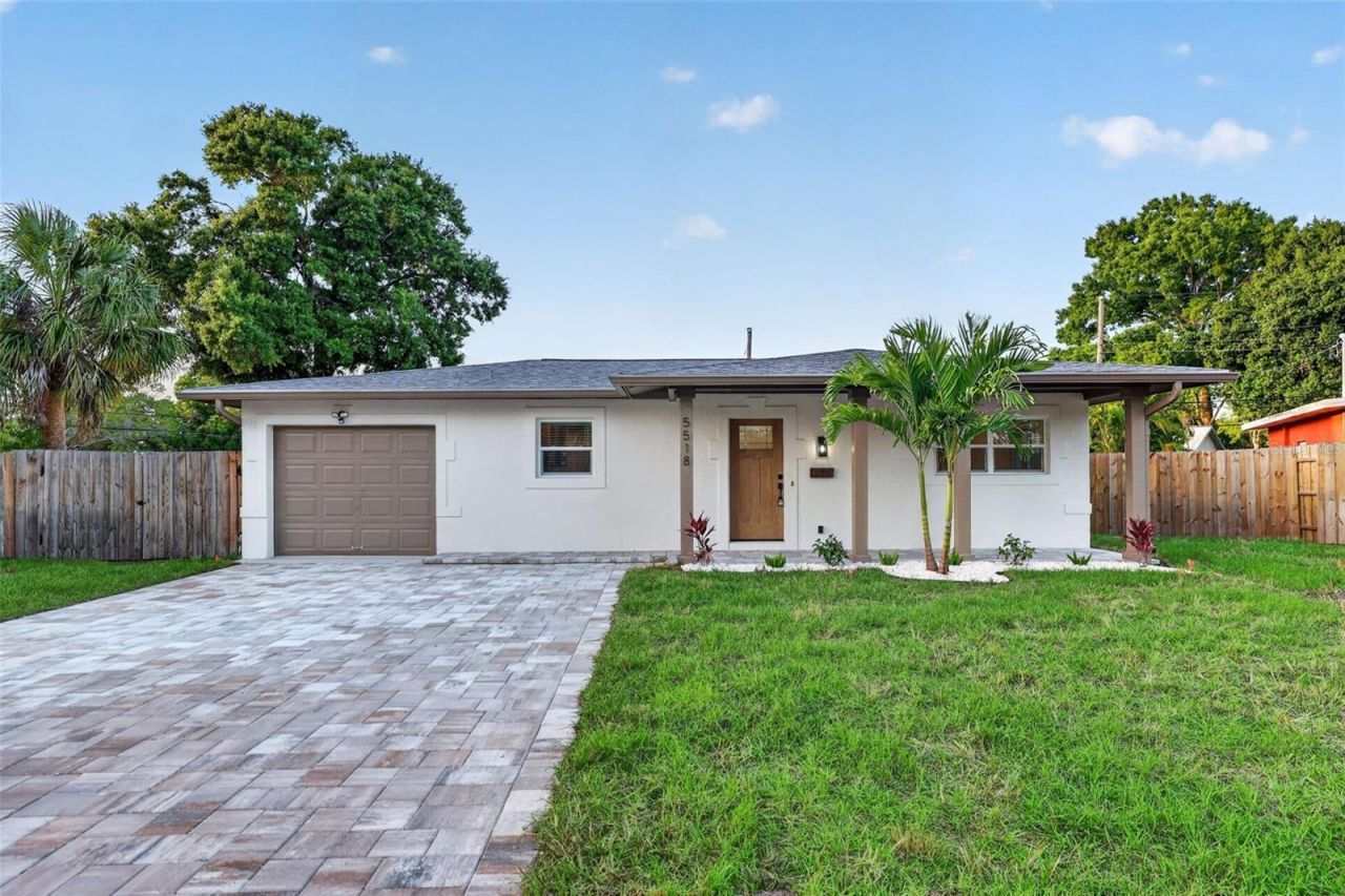 One or more photo(s) has been virtually staged. Beautifully renovated 3-bedroom, 2-bath home with a 1-car garage in a prime St. Petersburglocation, just 1 mile from Placido Bayou and within walking distance to a public park. Thismove-in-ready home features solid wood modern cabinetry with custom white quartz countertops, afunctional in-home laundry room, and a spacious, oversized primary suite complete with a custombathroom and large walk-in closet-rare for the area. Enjoy a huge oversized yard, perfect foroutdoor living and entertaining. Ideally situated near 4th Street North with easy access to toprestaurants, shopping, downtown St. Petersburg, and the beautiful Gulf beaches.
